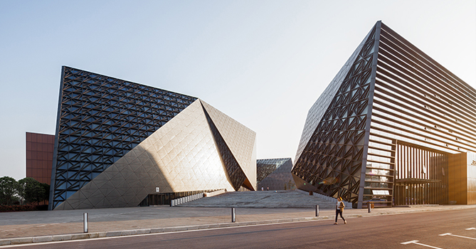 玻璃、金屬板、鋁板網(wǎng)交替出現(xiàn),簡(jiǎn)潔、純粹又現(xiàn)代,這是重慶璧山文化藝術(shù)中心給人的第一感受。這個(gè)極具藝術(shù)氣息,卻又與周邊環(huán)境相輔相成的藝術(shù)中心,就是本次碧麗直飲水項(xiàng)目的所在地。